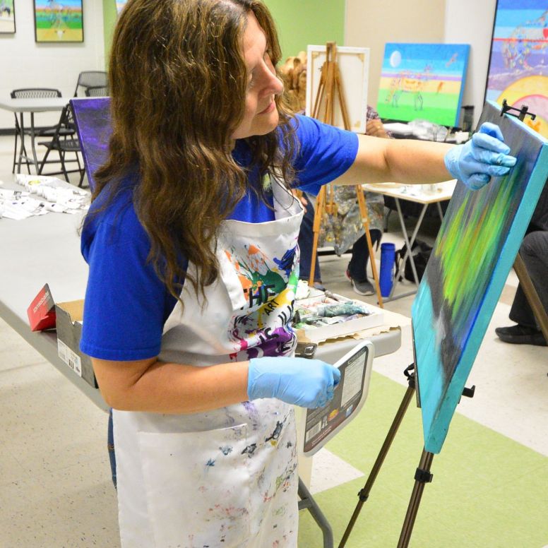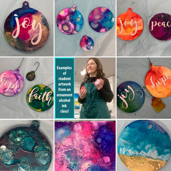 I’ve always been a creator. I started out with pencil and pastel, then moved on to photography and scrapbooking. Now I create with acrylics, encaustics, oils, and alcohol inks. I use inks the most, as they are unruly and vibrant, which makes them fun to explore.